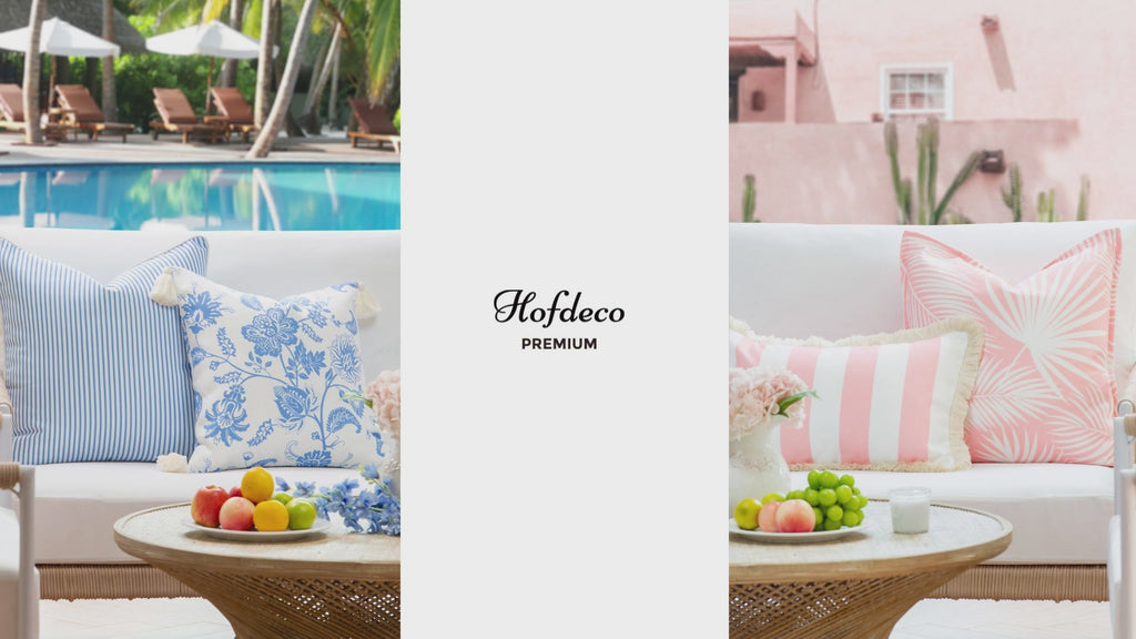 Coastal Indoor Outdoor Lumbar Pillow Cover, Embroidered Palm Leaf Tassel, Blush Pink, 12"x20"
