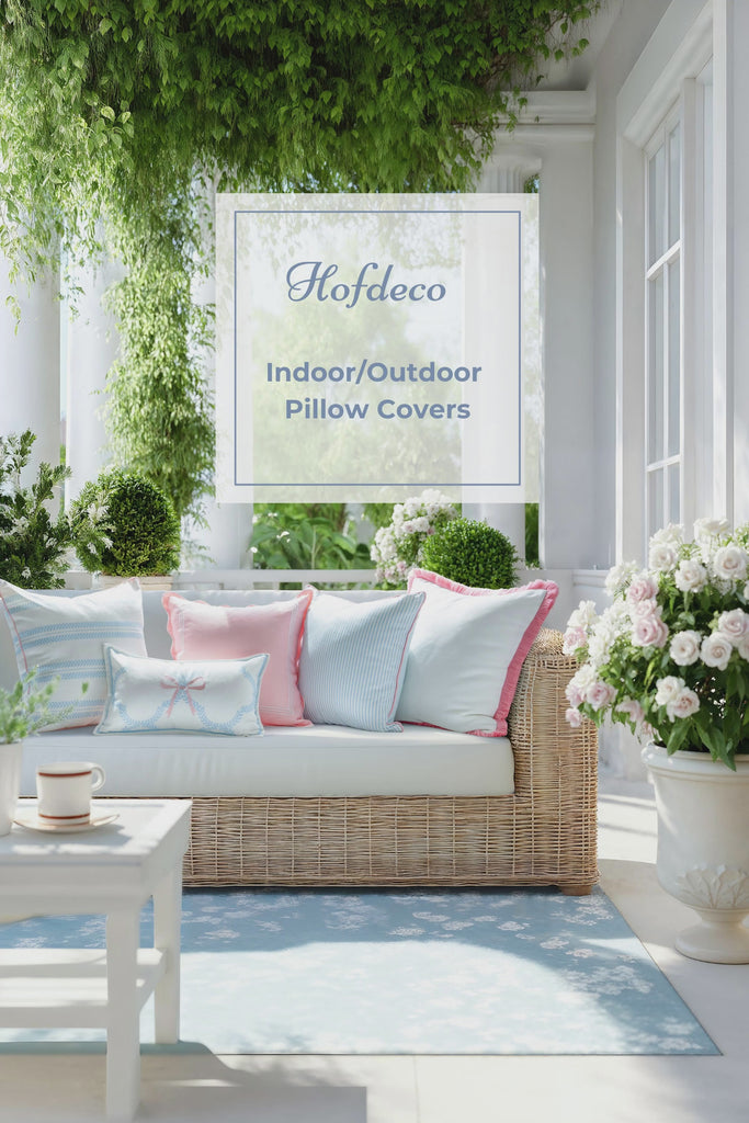 Coastline Stripes, Indoor/Outdoor Blue Striped Pillow Cover, with Pink Piping, 20"x20"